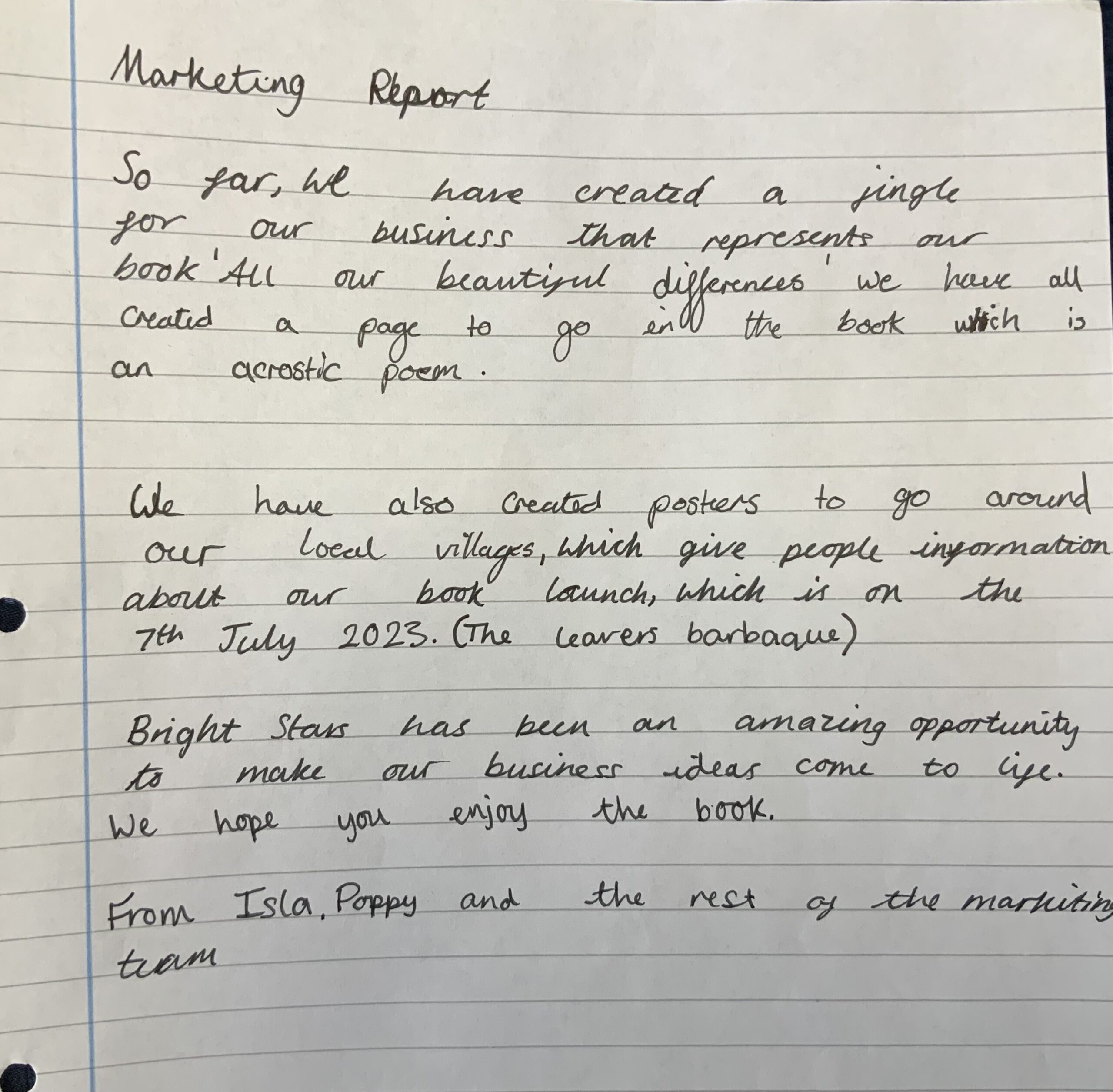 We started to plan our own ideas for our Bright Stars business using our £50 funding.