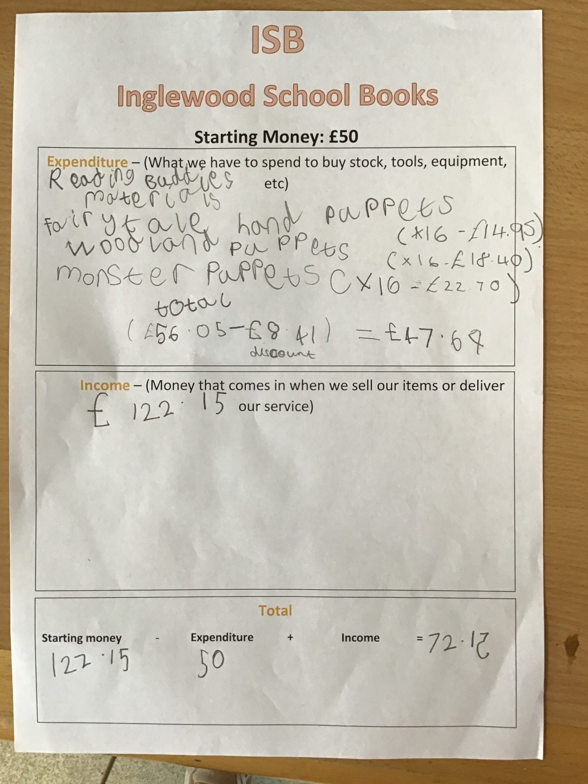 How to use our £50 effectively. That we could use resources that have been donated and things we already have around school to make our products, this was to save us some money that we needed to use elsewhere for other products.