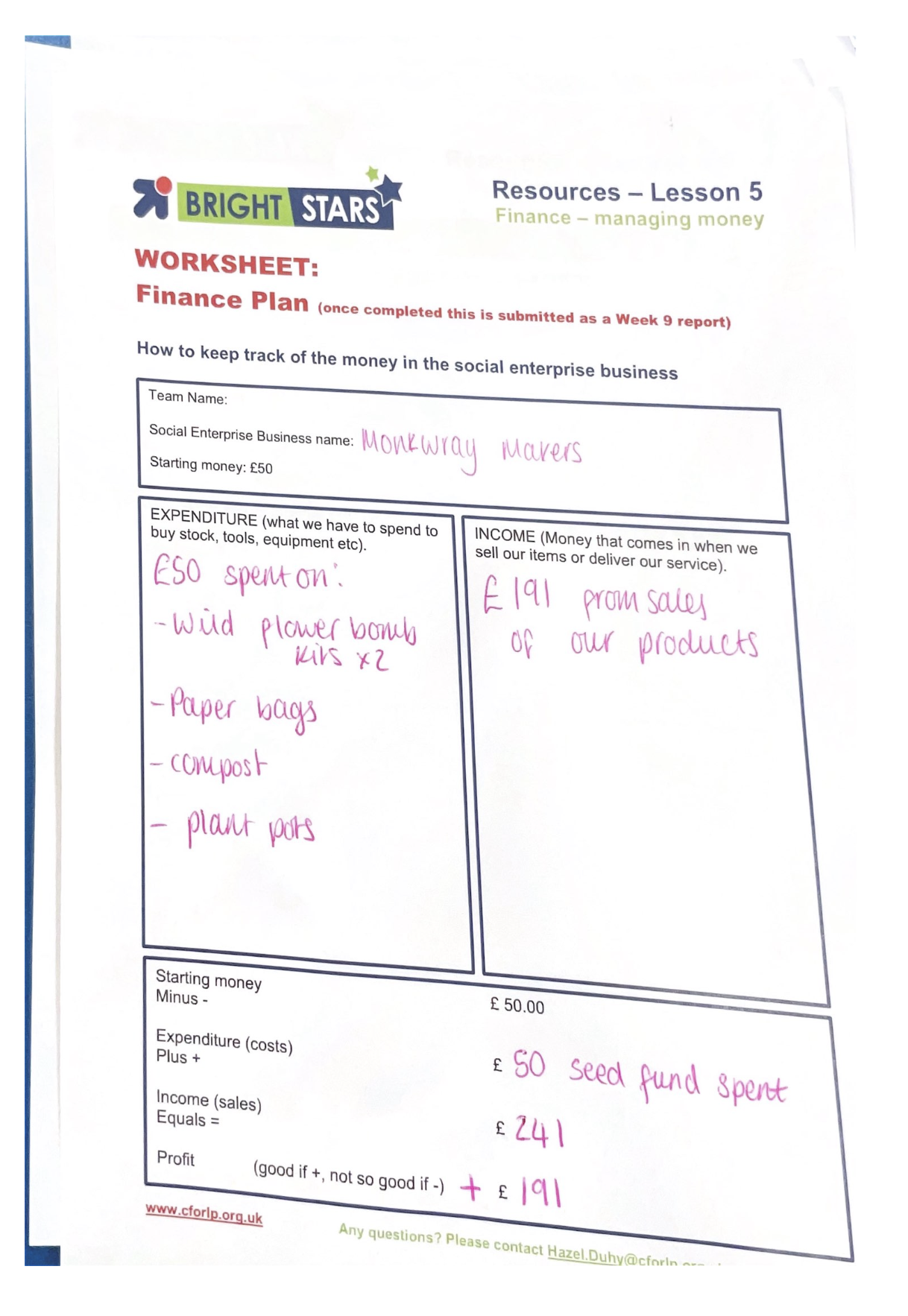 This has been the busiest week so far as we have all been doing Bright stars Tuesday, Thursday and Friday. This week we have finished building and painting our planters, we have also lined them. We have received an amazing donation from Whitehaven garden centre, they donated a £54 voucher! Some of us have made very colourful posters! We have decided a selling date (next Wednesday).Some of us have made wild flower bombs, a couple of children have made stickers for the packaging. We have a total of £4.68 left.